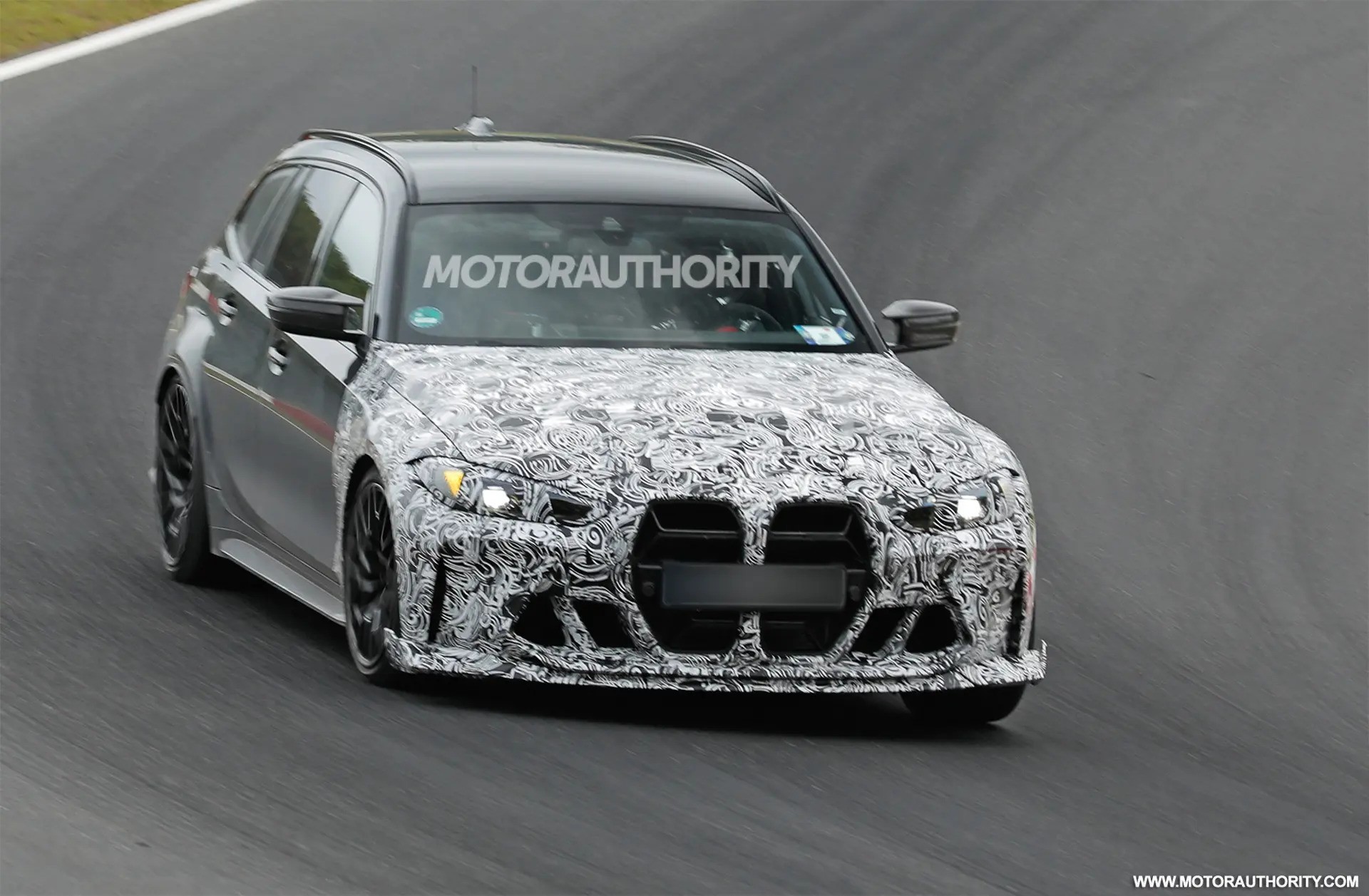 近日,一组新款宝马M3 CS Touring的谍照曝光。据悉,这辆新车是宝马M3 CS的旅行版,目前正在纽北赛道进行测试,预计将在今年内正式发布。