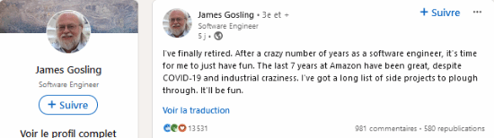 Java之父詹姆斯·高斯林(James Gosling)在最近宣布退休的消息,他表示已经超过了69岁生日,在过去7年中曾在亚马逊工作。尽管受到工业环境的影响,但他在过去的这段时间里还是过得非常愉快。