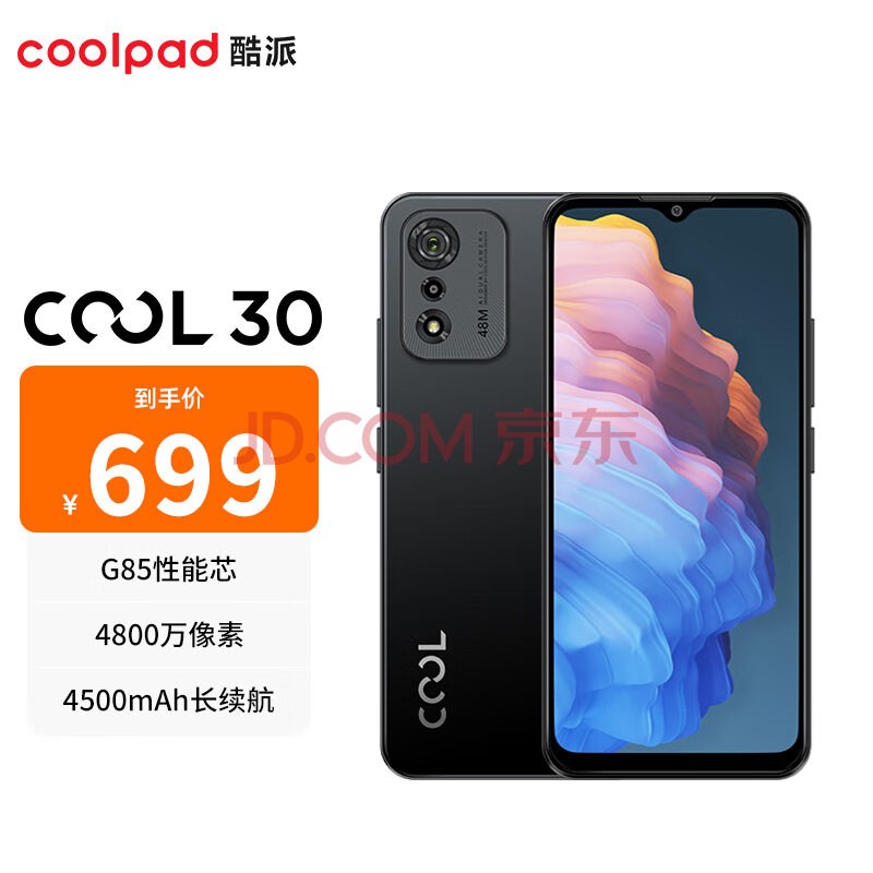 酷派 COOL30 4800万像素 G85性能芯 4500mAh长续航 双卡双待 老人学生备用智能拍照手机 4GB+64GB 锆石黑