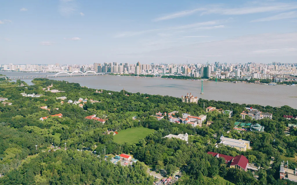哈尔滨太阳岛与松花江南岸。图/视觉中国