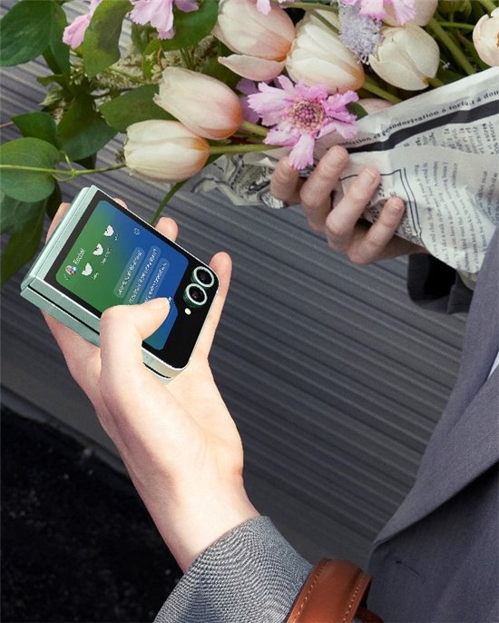 此次,三星Galaxy Z Flip6手机采用了全新的直线线条和醒目的摄像头模组设计,在造型上更为时尚靓丽,并且展现出了专属前卫科技的未来感。在GalaxyAI的加持下,3.4英寸的大视野智能外屏也带来了更多兼具可玩性和实用性的功能。比如,这次的外屏壁纸就是一大亮点。除了支持用户自选的图片外,该机还新增了互动壁纸和生成式壁纸选项。前者可以与根据用户的动作进行互动,趣味性十足。后者则是支持用户输入关键词,以AI生成独一无二的图像,给个性化提供新的注脚。