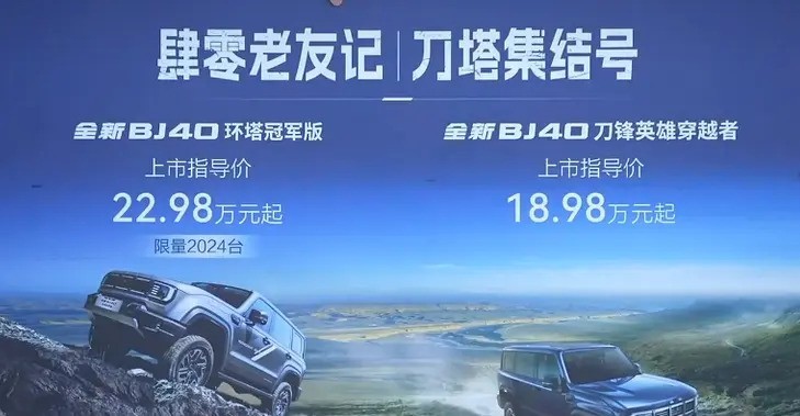 近日,我们从可靠渠道了解到,北京BJ40刀锋英雄/环塔冠军已经正式上市。限量发售2024台的北京BJ40环塔冠军版和全新北京BJ40刀锋英雄版穿越者(柴油动力)的指导售价分别为22.98万元和18.98万元。