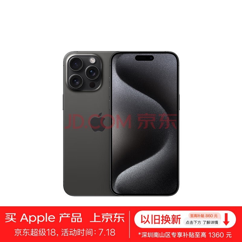 Apple/苹果 iPhone 15 Pro Max (A3108) 512GB 黑色钛金属 支持移动联通电信5G 双卡双待手机