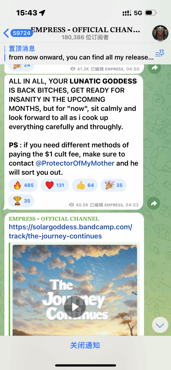 根据公告内容显示,EMPRESS计划建立一个基于Telegram群组的大型多人在线角色扮演游戏服务器(MMORPG),在这个服务器中将会有各种活动供玩家参与,并且可以进行排名。而排名靠前的玩家则有机会向EMPRIX学习逆向工程知识,并且该组织也会为达到特定等级或者完成指定条件的用户提供课程指导。但是加入这个服务器需要支付1美元的费用。