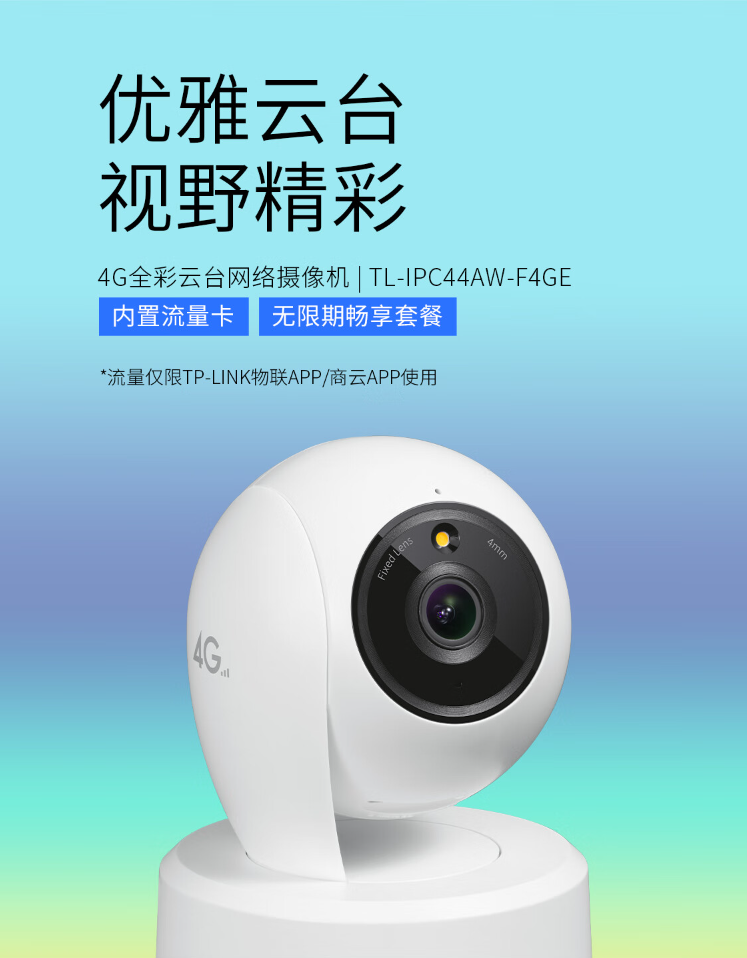 近日,TP-LINK推出了一款名为“TL-IPC44AW-F4GE”的400万像素4G云台网络摄像机,售价369元起。这款摄像头内置流量卡,并附赠终身免费无限流量套餐(仅限于使用TP-LINK的物联网/商用云App),与设备绑定。