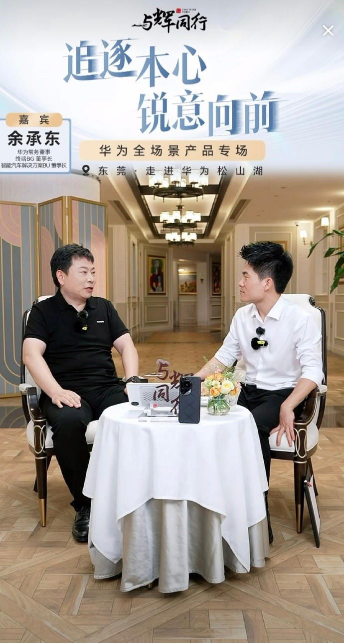 在7月15日晚间,“与辉同行”走进华为东莞松山湖园区,与辉同行主播董宇辉与华为常务董事、终端业务董事长、智能汽车解决方案BU董事长余承东进行一场直播对话。