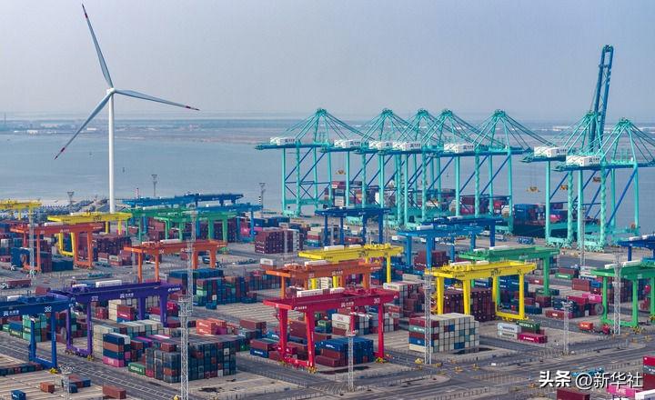2024年7月3日,一艘集装箱货轮停靠在天津港“智慧零碳”码头(无人机照片)。新华社记者 赵子硕 摄