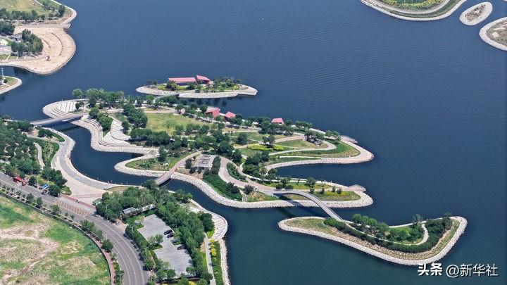 这是2024年6月28日拍摄的天津市滨海新区南湾公园一景(无人机照片)。新华社记者 李然 摄