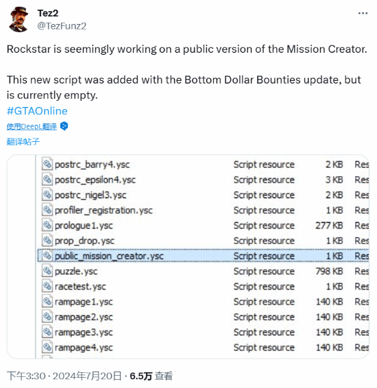 据了解,这个脚本名为"public_mission_creator.ysc",被推测为可能是公共版本的“Mission Creator”的一部分。Rockstar已经添加了这项新功能到最近的“Bottom Dollar Bounties”更新中。然而,目前这个脚本内部的内容仍然是空白的。