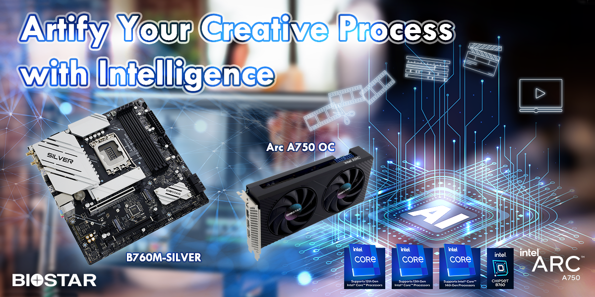 近日,映泰宣布推出一款名为“Edge AI PC”的家庭电脑解决方案。该方案包含了一款名为B760M-SILVER的主板和一块名为ARC A750 OC的显卡。