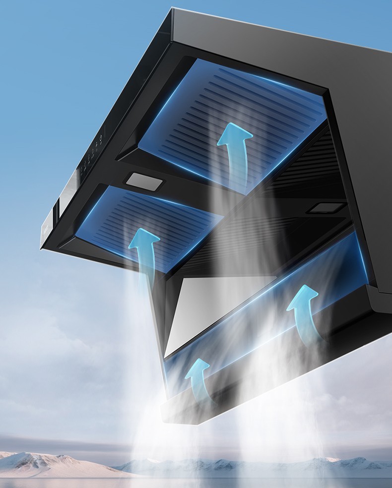 相比传统的顶吸式烟机和侧吸式烟机,双吸式烟机能够更好地结合两者的优势,从而实现拢烟效果、净烟效果上的双重升级。如K6采用顶部2个进烟口、侧面1个进烟口的2+1组合结构,烹饪产生的油烟在升腾的过程中先由近处的侧吸口吸走大部分油烟,有效避免油烟热浪扑脸造成的不适,剩余油烟被顶面双吸口强力聚拢,防止油烟侧逃。同时,K6爆炒吸力高达24m?/min,静压高达1000Pa,即使在做饭高峰期也不倒灌、不呛鼻,更通过多维结构降噪实现50dB低噪运行(注:噪音值为半消声室噪声),进一步保证用户在下厨的过程中呼吸舒畅、耳畔清净、肤感舒适、体验良好。