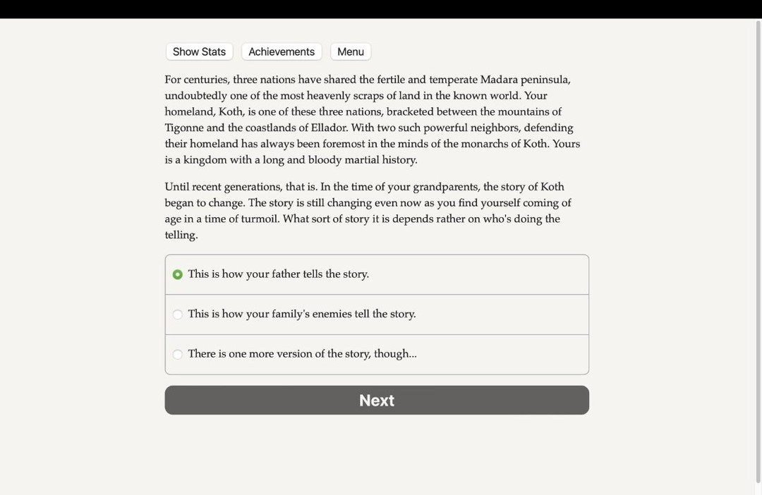 《Turncoat Chronicle》是一款文字游戏,玩家扮演国王的角色,在游戏中面临继承王位的挑战。玩家需要做出选择,是捍卫国王还是出卖他。游戏通过文字描述来展开情节,玩家需要根据情节做出选择,并承担选择带来的后果。游戏具有较高的可玩性和挑战性,适合喜欢文字冒险和策略游戏的玩家。