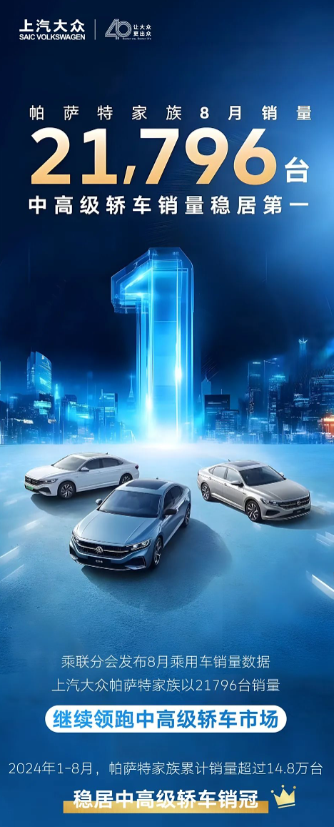 8月份,上汽大众帕萨特家族销量达到了21,796台车辆,自年初至8月底的累计销量已突破14.8万辆大关。这是帕萨特家族在中国市场的惊人销售业绩。同时,值得一提的是,自进入中国市场以来,帕萨特家族的总销量已经超过360万辆。