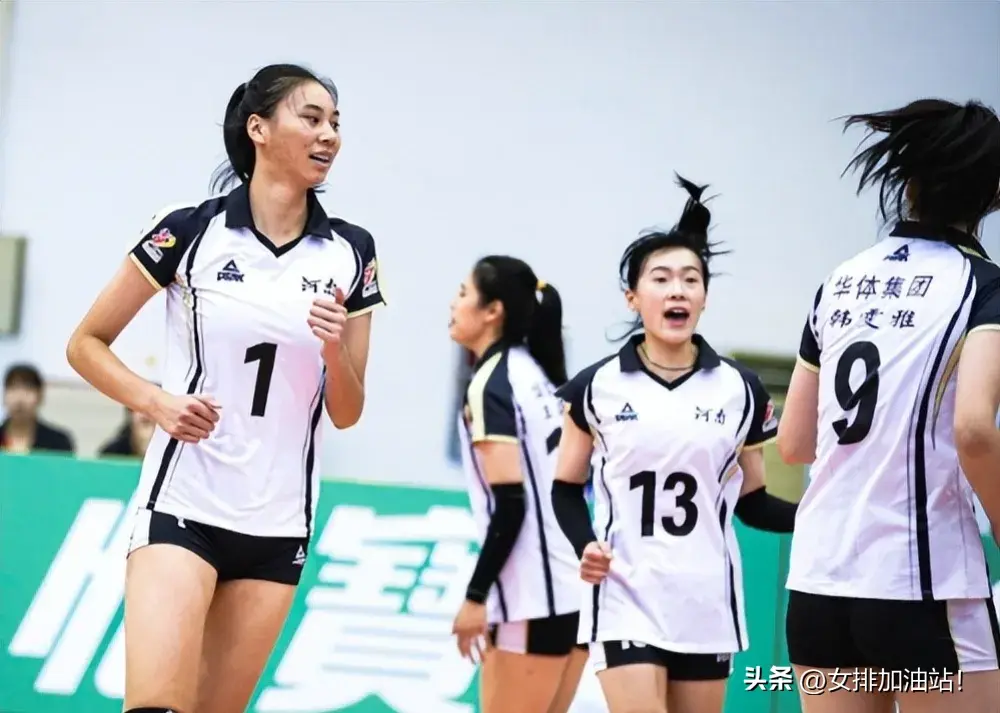 河南女排的段梦可同样表现不错!身高198的段梦可,司职接应,拥有很好的弹跳和力量,是中国女排难得一见的强力接应好苗子。段梦可身体条件是最顶级的,球感也不错,唯一的缺憾就是不够自信,场上畏首畏尾,没有那种舍我其谁的霸气。