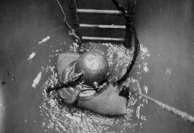 1960年,南京长江大桥正桥桥墩需要深潜水作业。图为潜水员冒着生命危险下水作业,保障大桥建设。中国铁路上海局集团有限公司南京桥工段供图