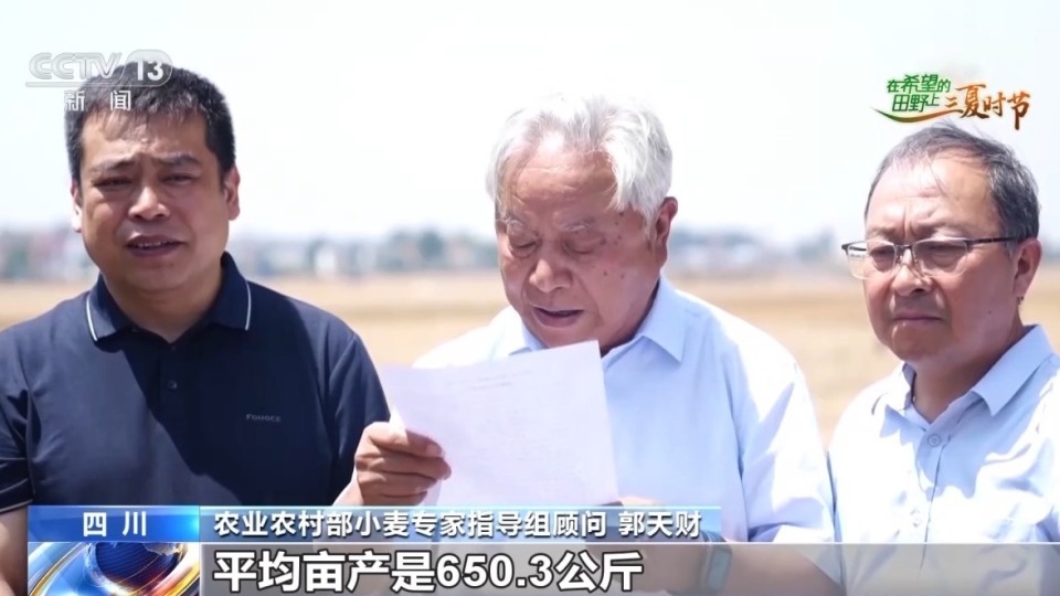 农业农村部小麦专家指导组顾问 郭天财:我们按照加权平均,平均亩产是650.3公斤,应该说创造了四川省百亩连片的最高纪录。