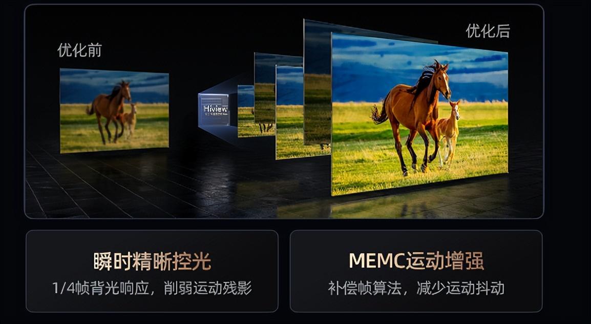 针对环境光影响屏幕问题,海信电视E8N?Pro通过16bits感控环境光 Pro实现随环境自动调节画质,白天清晰不失真,晚上柔和有细节。更贴心的是,它还采用5000nits超低反黑曜屏,实现178°超广观看视角,即使白天约一堆朋友看球,也不受倒影、反光影响,人人都是最佳视角。