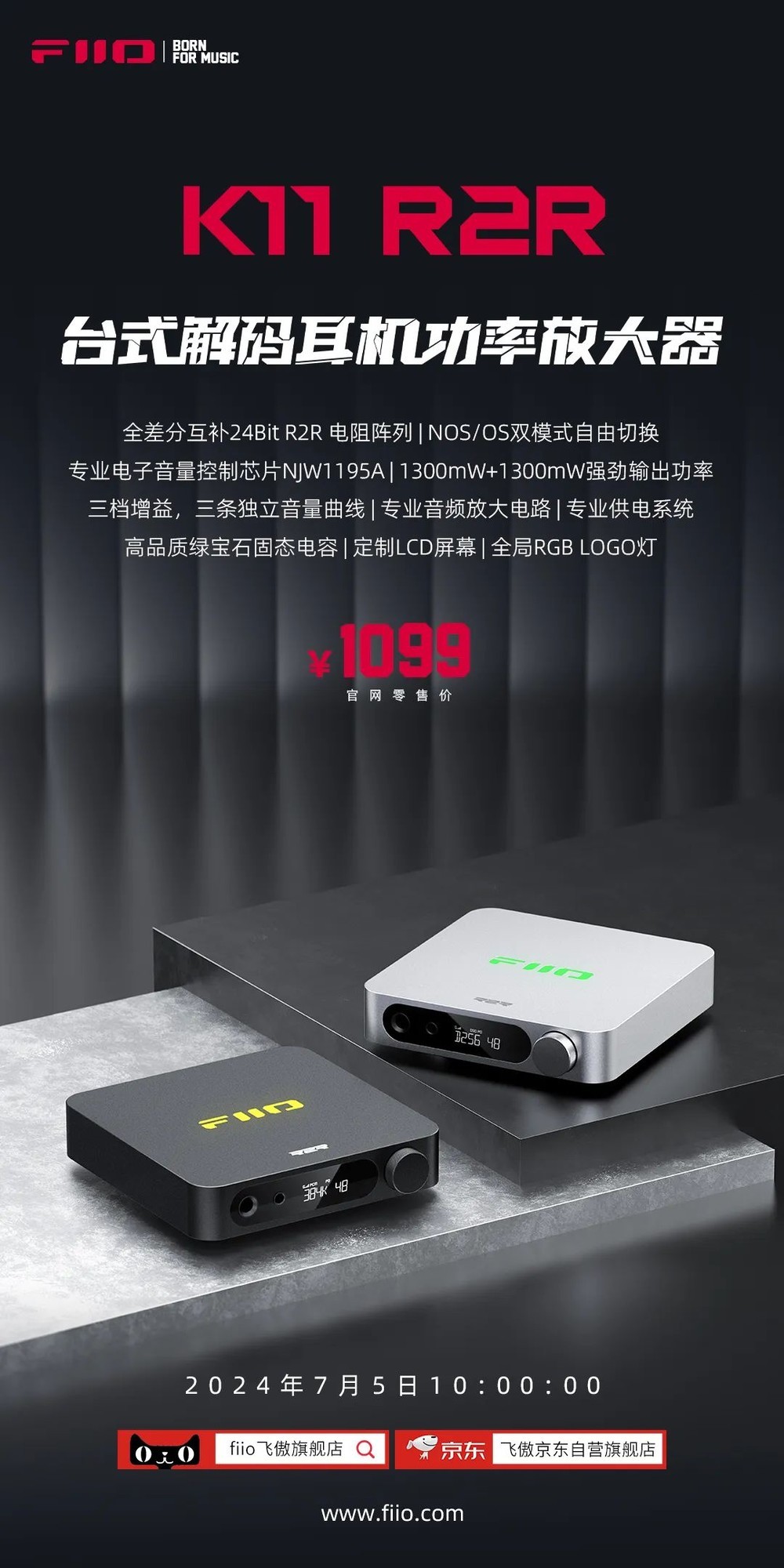 飞傲近日发布了全新的K11 R2R台式解码耳放,售价1099元,并已在今日10点开售。该产品搭载了飞傲全新自研的四路全差分互补24Bit R2R电阻阵列DAC,由每路48颗低温漂(30ppm)的精密薄膜电阻构成,总共有192颗。此外,K11 R2R采用互补架构,在噪声和FFT谐波分量方面表现出色。