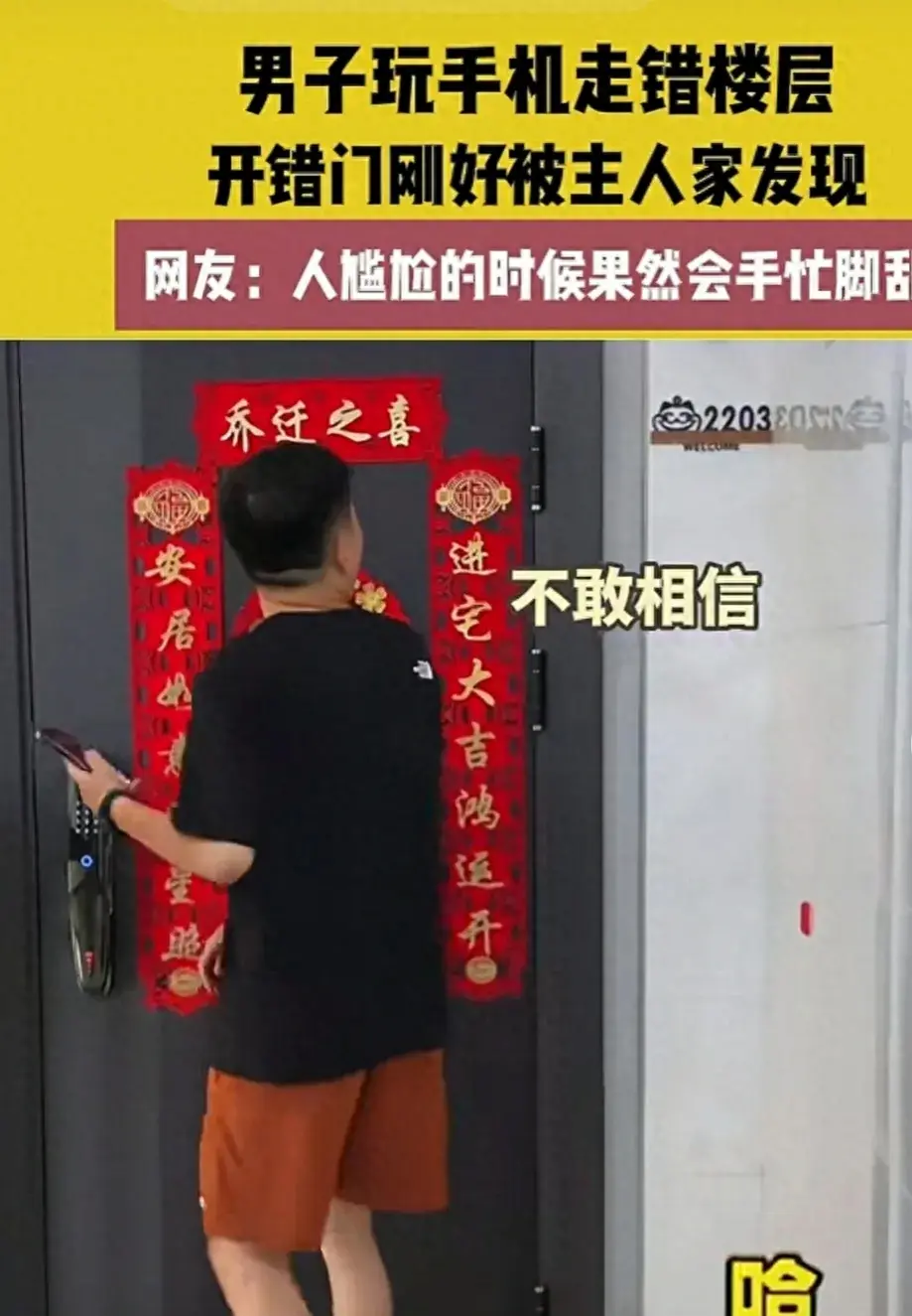 大妈皱了皱眉头,上下打量了一番小王,语气稍微缓和了一点:“我说小伙子,你这玩手机也太入迷了吧,连自己家都能找错。这要是我不在家,你岂不是要硬闯进去啦?”
