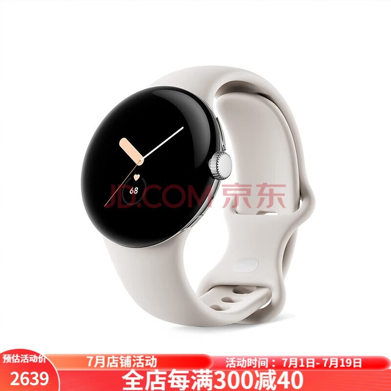 谷歌(Google) 谷歌 Pixel Watch 智能手表 防水游泳可用表盘耐磨时尚简约 22新款 银色+Chalk Active表带 WiFi版