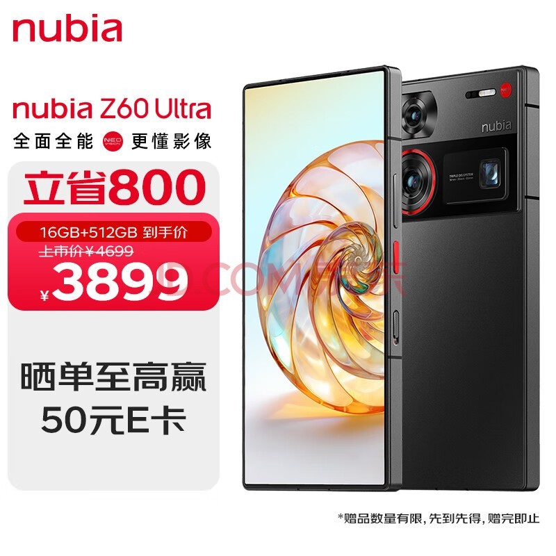 nubia努比亚Z60 Ultra 屏下摄像16GB+512GB 星曜 第三代骁龙8 三主摄OIS+6000mAh长续航 5G手机游戏拍照