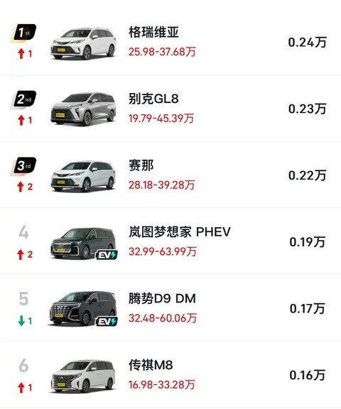 总结来看,在这一周的销量排行榜中,别克GL8仅排第二、本田奥德赛位列第十、丰田赛那名列第三。同时,在MPV市场上还有许多其他值得关注的车型,如艾力绅等。因此,在选购时建议消费者要根据自己的需求和预算做出选择。