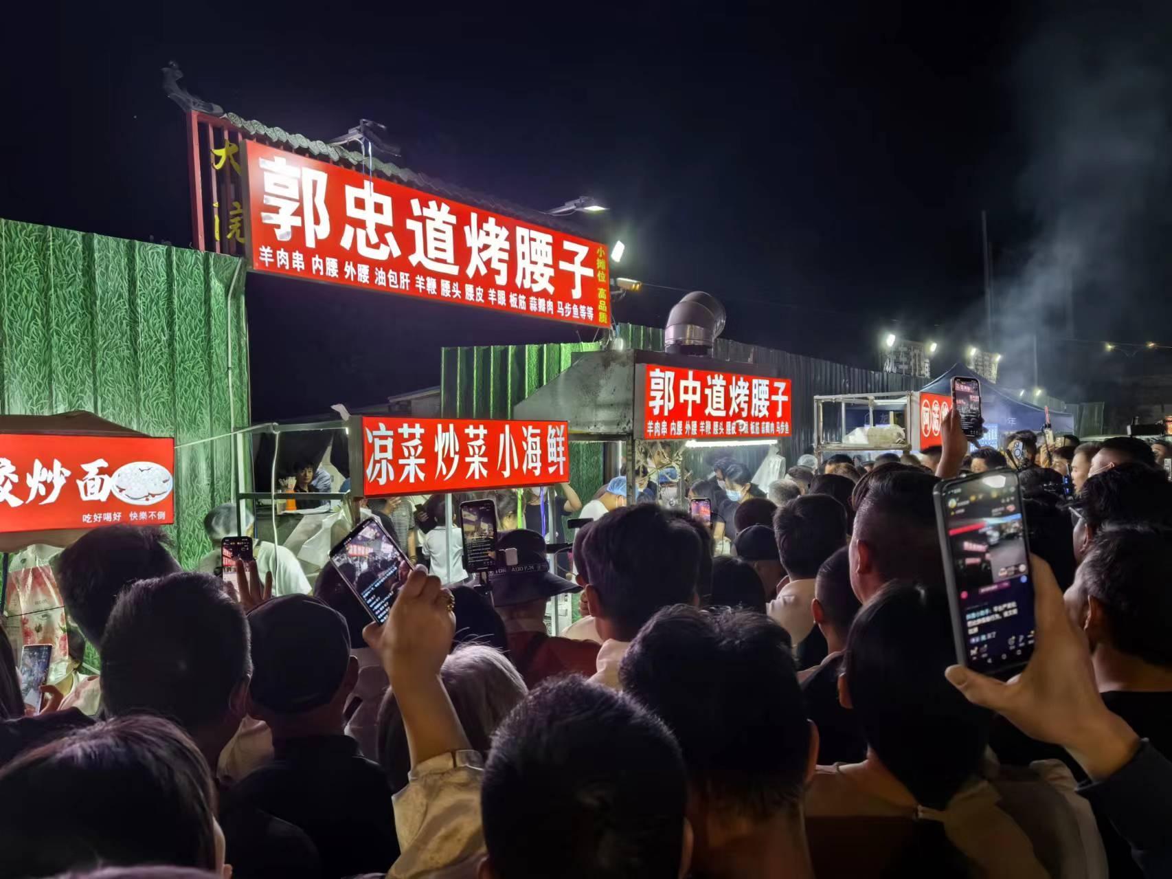 烧烤摊前挤满主播。图/九派新闻 马婕盈