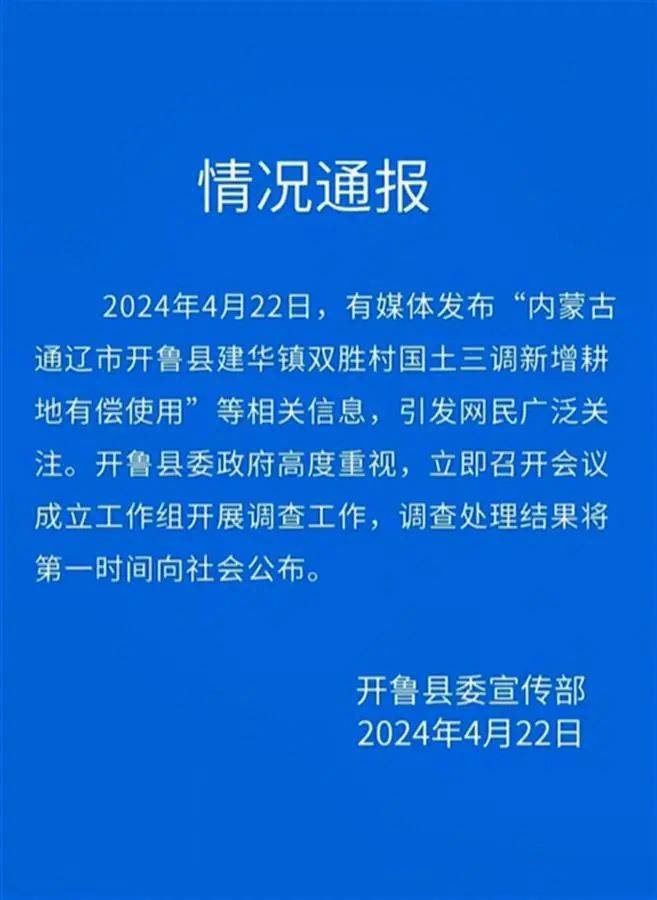 4月24日,开鲁县人民政府新闻办公室发布《开鲁县关于近期网民关心关注问题调查情况的说明。