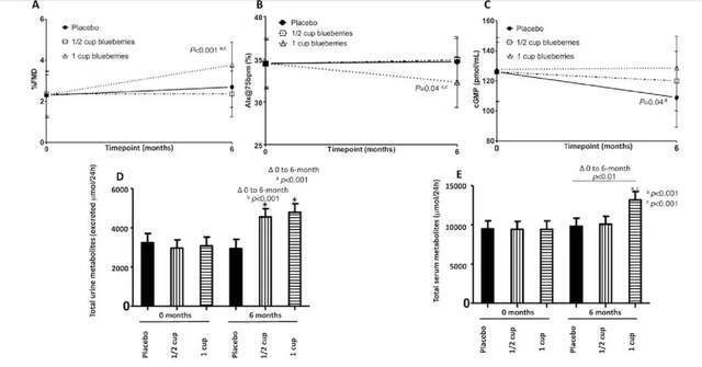 [3] Curtis PJ, van der Velpen V, Berends L, Jennings A, Feelisch M, Umpleby AM, Evans M, Fernandez BO, Meiss MS, Minnion M, Potter J, Minihane AM, Kay CD, Rimm EB, Cassidy A. Blueberries improve biomarkers of cardiometabolic function in participants with metabolic syndrome-results from a 6-month, double-blind, randomized controlled trial. Am J Clin Nutr. 2019 Jun 1;109(6):1535-1545.