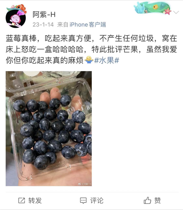 蓝莓:不产生垃圾的方便水果|图源:微博截图