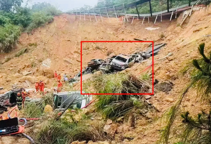 然而,这痛苦的揭示并未结束。5月1日早11:45时的最新消息是:涉事人员共49人,遇难人数上升至19人,事发车辆为18辆。**这一地段的公路塌方路面长约17.9米,面积约184.3平方米,如果从高空俯视,这个塌方地就像是地球上新形成的一个疤痕。