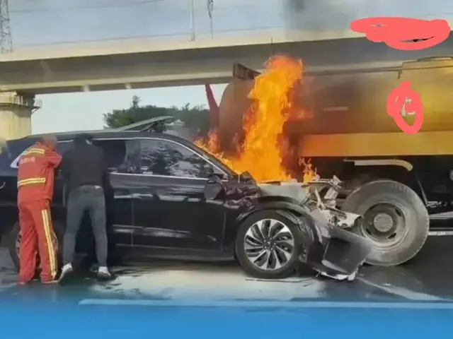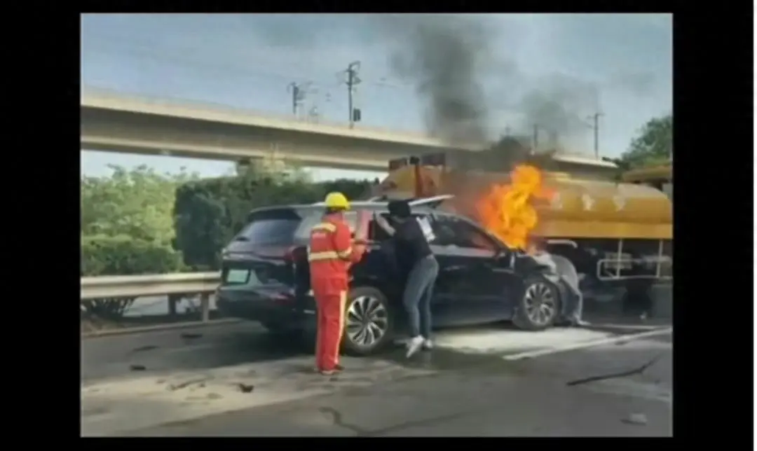 起火后被撞击的华为问界M7不能主动开门,而救援人员无法打开车门,只能砸窗救人,最终由于火势太大,车上的三人被活活烧死了啊,分别是一对父子,还有车主的弟弟的啊。
