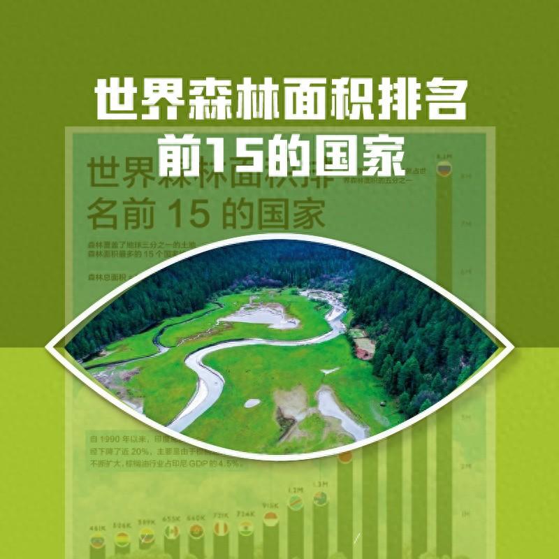 加上澳大利亚、刚果民主共和国、印度尼西亚、印度和秘鲁,前十名的森林面积之和略高于世界森林的2/3。如将排名扩大到前20位,将占地球总森林面积的80%。