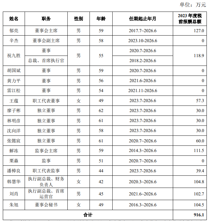据了解,万科高管的薪酬体系由固定薪酬、年度奖金和经济利润奖金三部分组成。2023年,高管的税前报酬仅包括固定薪酬和公司为其缴纳的社保、公积金。例如,郁亮2023年的税前报酬为127万元,其中包括115万元的固定薪酬和12万元的社保、公积金。