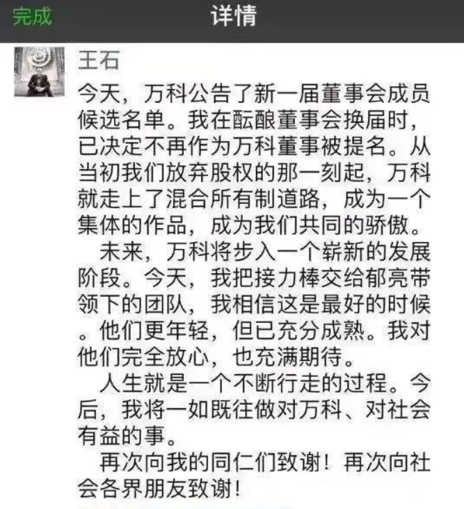 此外,王石从万科退休后,除了享受生活,事业上也没闲着。再创业办公司、搞私募基金等等,他新创办的公司一度还传出上市消息。