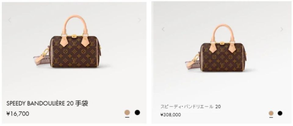 左图为LV Speedy 20手袋在中国官网的价格,右图为日本官网的价格 图源:LV官方