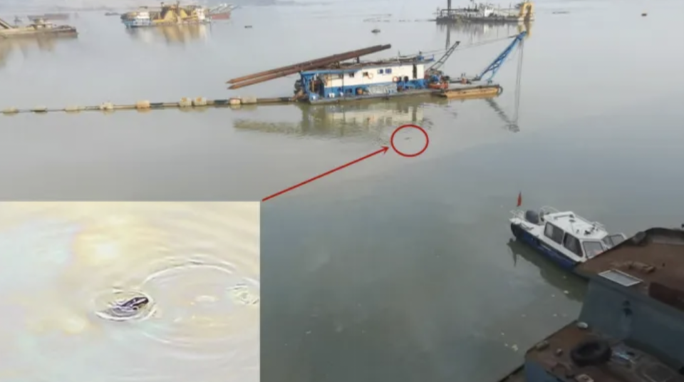 据报道,今年3月24日,督察组暗查发现,违规疏浚船只发生漏油事故,一头小江豚被困油污区域。