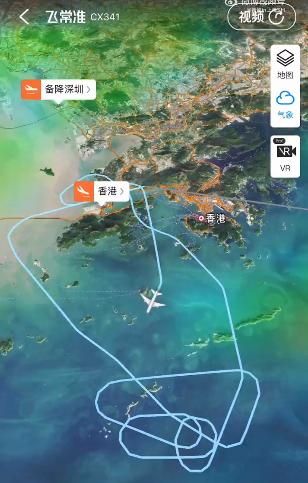 网传航行路线显示,CX341航班初次到达香港机场附近未能降落,向南飞行一段时间后飞往香港依旧未能降落,随后再次更改路线飞到深圳备降,最终从深圳飞抵香港。记者查询4月30日CX341航班动态显示,该航班确系备降深圳后抵达香港,航程中停留时间共计3小时18分。