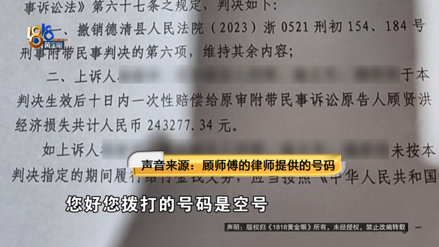 顾师傅的律师提供了四名当事人的电话希望记者帮忙跟对方沟通赔偿事宜。