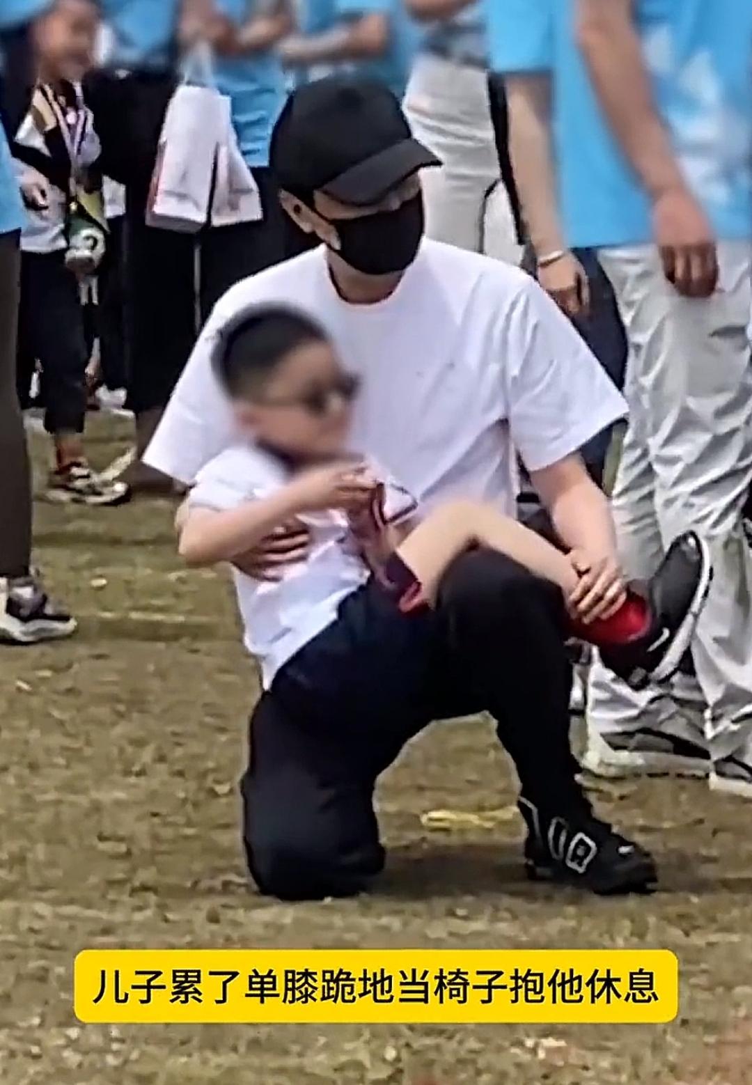 5月11日,有媒体曝光了冯绍峰陪儿子参加亲子运动会的有爱画面。