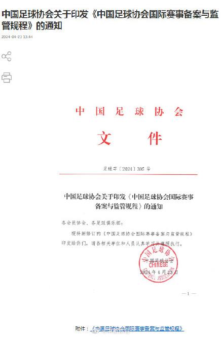 中国足协今日在官网发布重新修订的《中国足球协会国际赛事备案与监管规程》。根据规程,非中国足协主办的国际A级赛,赛事主办方应通过国际足联认证的赛事经纪人组织和联络球队参赛,并向中国足协进行备案。赛事未获得国际组织批复前,体育赛事活动组织者不得开展任何形式的票务销售及票务预售等工作。体育赛事活动组织者应完善售票条款,在启动售票前,告知公众主要球星出场条款及一旦违约后的处理方案,并将有关方案在售票方案(售票条款)中予以明确。(中新体育)