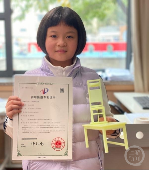 今年3月,这款防地震桌椅获得了国家知识产权局颁发的实用新型专利证书,并获得2024年宋庆龄少年儿童发明奖重庆赛区小学组金奖。