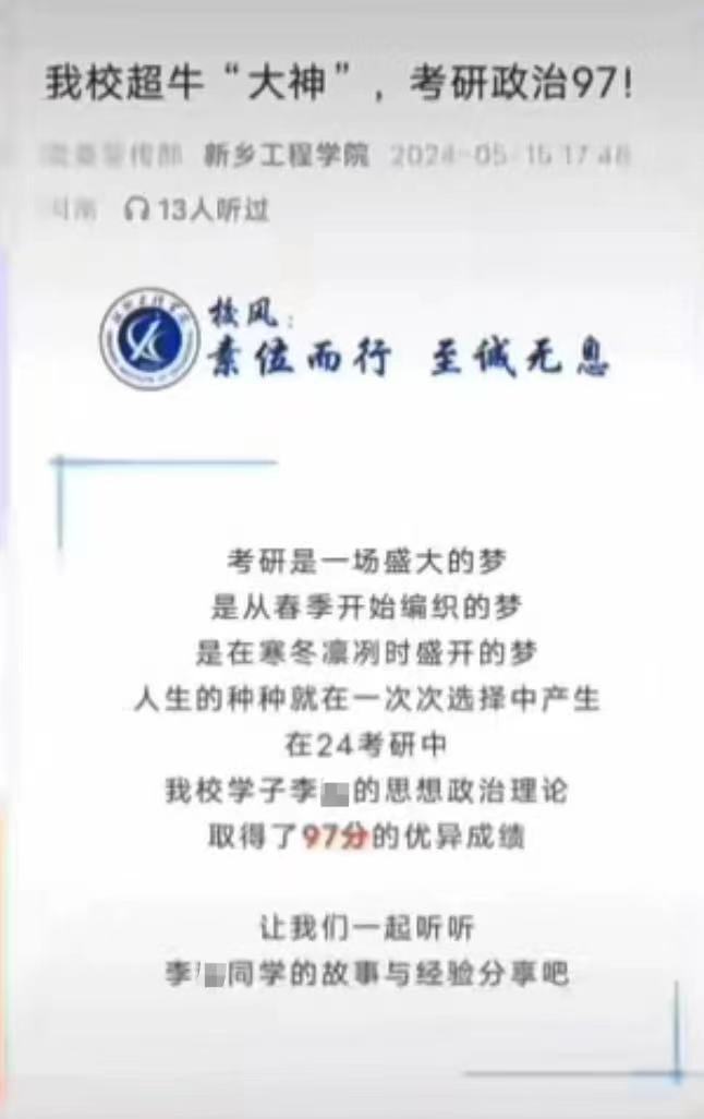 校方回应学生考研政治97分:上报成绩存在问题,未考上研究生