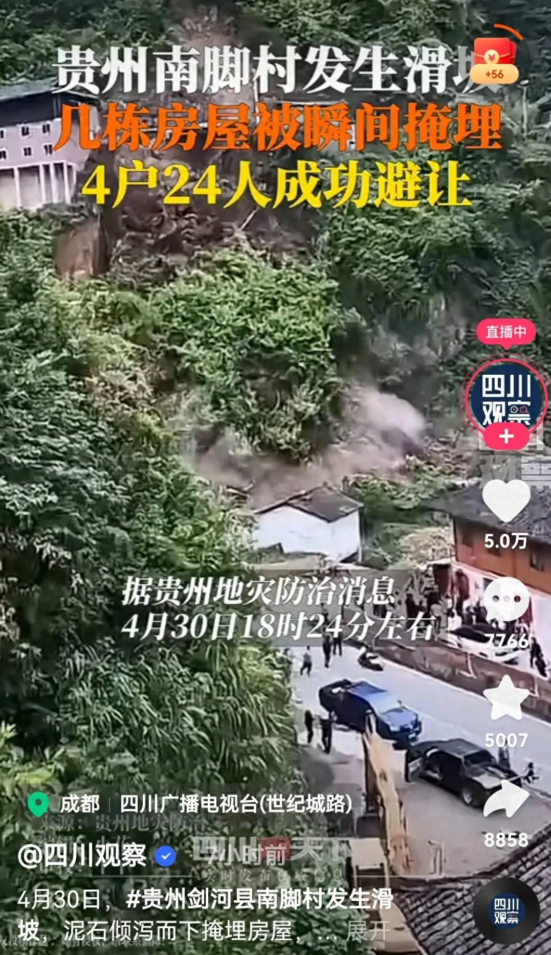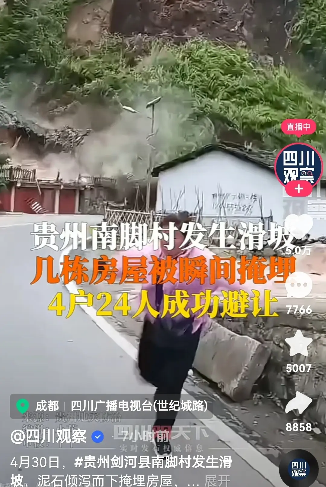 4月30日,晴朗的天空突然变得阴沉,乌云密布,仿佛预示着一场灾难的降临。在贵州剑河的一个偏远山区,一场突如其来的山体滑坡打破了往日的宁静。巨大的山石伴随着泥土,如同脱缰的野马,狂奔而下,瞬间摧毁了一切阻挡它们的东西。房屋、树木、道路,都在这场灾难中化为乌有。山体滑坡的威力之大,让人瞠目结舌,仿佛是世界末日的来临。