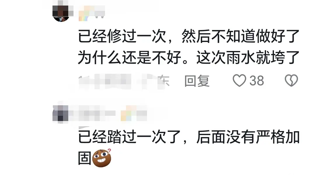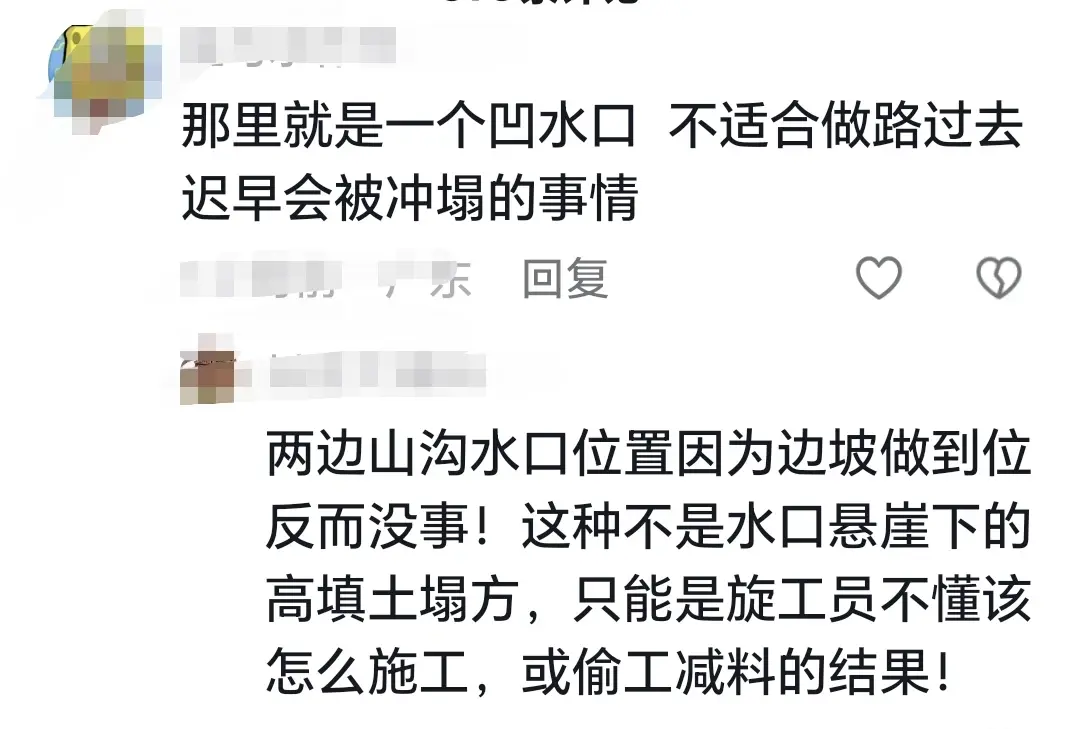 这样,自然和人为两方面因素结合,连续降雨导致排水措施失效,即使在已经加固的情况下,依然没阻挡灾害发生。但是,也有网友认为这就是工程质量问题,甚至是偷工减料、设计不科学的结果。