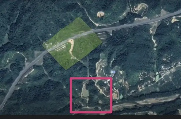 塌方区域卫星云图前后对比露出端倪,塌方位置下游就是水库,为排水口,事发前有人工设施