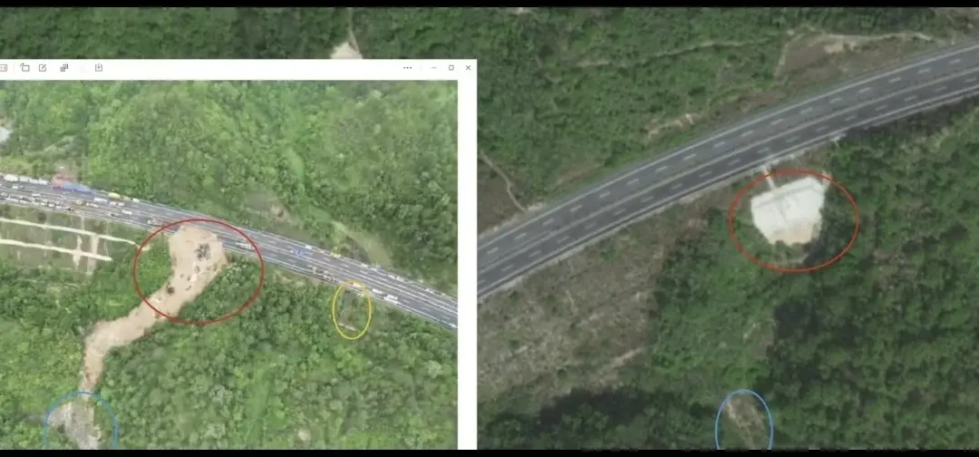事发之后的卫星云图显示,高速公路被塌方撕开了一个硕大的口子,由上到下越来越窄,直接到谷底,形状犹如一条大蛇。网友调侃,强龙不压地头蛇,梅大高速又叫梅龙高速,“没龙”蛇就为大。