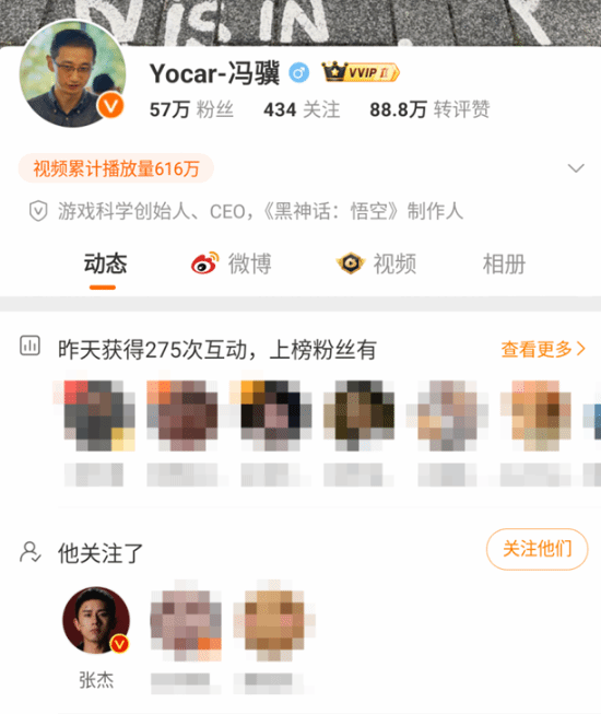 《黑神话:悟空》的音乐让人难忘,近日发现游戏制作人冯骥在微博上关注了知名歌手张杰。这让很多玩家们感到困惑,猜测他们可能有着某种合作关系。因为在冯骥过去的一次采访中曾提到过他成立游戏科学公司是为了能写歌词。也有一些玩家戏称冯骥今后可能不会再从事游戏开发工作,而是专注于创作歌词。然而另一些玩家则认为冯骥只是因为个人喜好才关注张杰的。这种现象引起了网友们的热议,大家对这件事情都有不同的看法。
