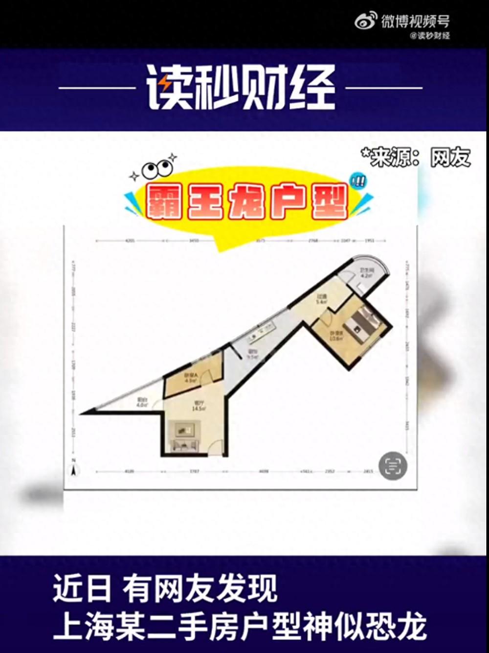 近日,上海静安区一套售价499万元的“恐龙户型”二手房在网络上引起广泛关注。该房型为2室1厅,建筑面积73.13平方米。有网友笑称,“喜欢恐龙的家人们有福了”;还有网友表示,“感觉卧室上洗手间有点远”。