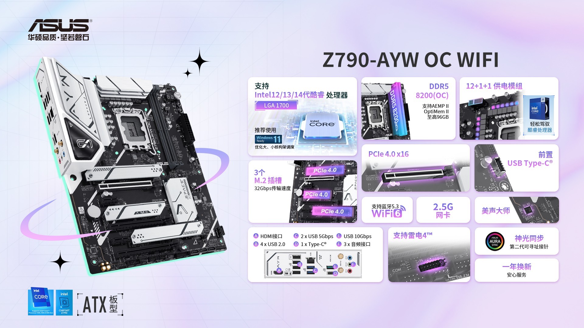 华硕(ASUS)Z790 AYW OC WIFI 哎呦喂 主板 支持DDR5 CPU 13900K/13700K/14700K(Intel Z790/LGA 1700)